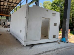 Hierbei wurden mehrere Module aus Betonfertigteilen angefertigt, welche im Inneren einen Motor enthalten. Die Modulbauweise aus Beton ermöglicht es, den Schall des installierten Motors zu absorbieren. Durch die verschiedenen Arten von Öffnungen in den Betonwänden zum Anschluss des Motors, sind dem Kundenwunsch keine Grenzen gesetzt.